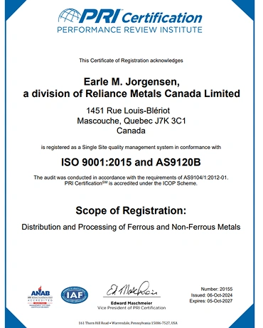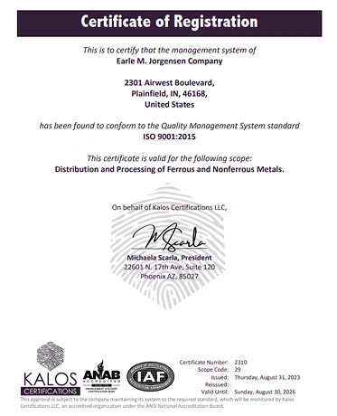 At Earle M. Jorgensen, we are committed to the continuous improvement of our processes and systems. The application of the principles and techniques of quality management result in reduced costs, improved quality and improved relationships between our customers and our suppliers. Our proprietary "Quality Resources" technology based program provides a robust, data-forward platform that drives our quality management system. Quality service is ensured through our company motto – “At EMJ, quality is the way we work”.
